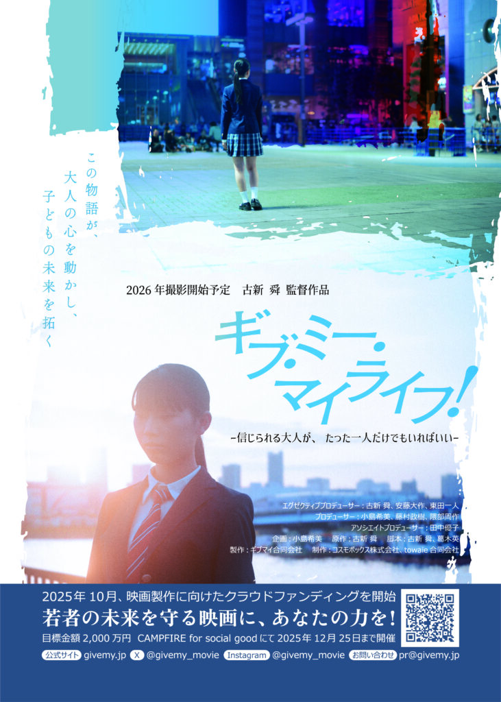若者の社会的孤立を救うために!映画『ギブ・ミー・マイライフ!』(2026年撮影開始予定、2027年公開予定)の製作にチャレンジします!